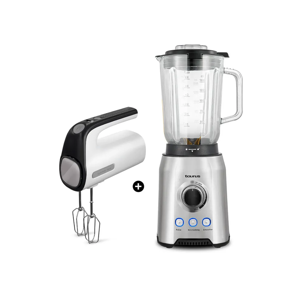 Con este combo olvídate de moler o triturar manualmente tus comidas y disfruta de tus salsas, purés y jugos favoritos en sus diferentes combinaciones. Con Alfa 1200 taurus ofrece un diseño elegante que enriquece cualquier cocina , ademas de funcion de triturar hielo , una jarra de vidrio con capacidad de 1.5L , un sistema de bloqueo de seguridad y un protector de sobrecalentamiento, con el fin de ofrecer la mejor calidad en producto para nuestros clientes. Cuenta con la Batidora Amasadora Station Inox de alta potencia con 500W que te permitirán elaborar todo tipo de masas, pasteles y recetas de la forma más fácil y rápida. Cuenta con un detalle extra en el diseño que la convierten en una amasadora única: su accesorio porta-varillas. El complemento más práctico para un buen almacenaje. Amasadora diseñada para ser ligera y de fácil uso.